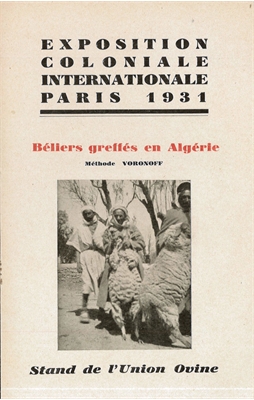 H Exposition coloniale internationale - Béliers greffés en Algérie - Méthode Voronoff - stand de l'union ovine